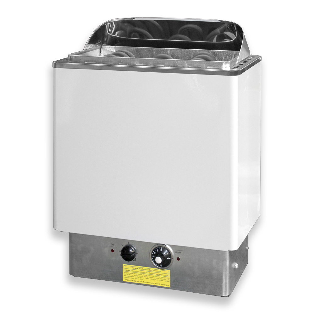 Электрокаменки имеют спереди открытый проём, что ускоряет процесс нагрева помещения сауны (бани). Электрокаменка предназначена для эксплуатации при температуре окружающего воздуха от -10°С до +120°С.