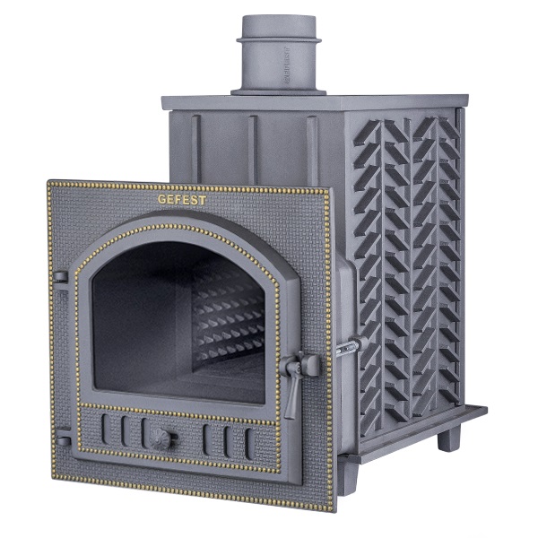 ПБ-02П-ЗК - печь с усиленной каменкой большей массы, с единым углублением внутрь топки для дополнительной укладки чугунного заряда. Теплосъемные шипы, со стороны горения пламени, в разы увеличивают площадь соприкосновения огня с каменкой и ускоряют передачу тепла, а также способствуют лучшему дожигу смешивая потоки пламени и воздуха поступаемого из воздушника. Эти усовершенствования значительно повышают мощность парообразования печи и выдают большее количество пара при непрерывной подаче воды. Каменка печей Гефест-ЗК является незаливаемой.