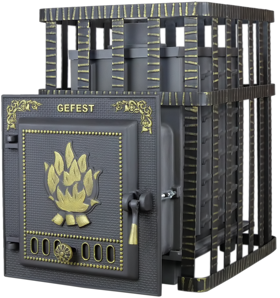 Чугунные банные печи ГЕФЕСТ — это 2-камерные топочные агрегаты, оборудованные системой дожига пиролизных газов, которая быстро нагревает каменку с зарядом или переводит печь в режим длительного горения.