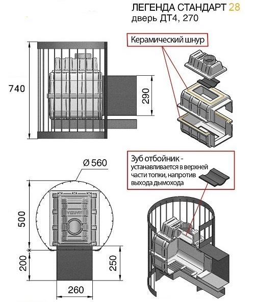Банная чугунная печь Легенда Стандарт 28 (ДТ-4С) укомплектована чугунной не герметичной дверцей Везувий ДТ-4С с жаропрочным стеклом «SCHOTT ROBAX».  Конвекционно-вентилируемый кожух "Стандарт" изготовлен из металлического прутка диаметром 6мм покрашенной черной термостойкой краской.