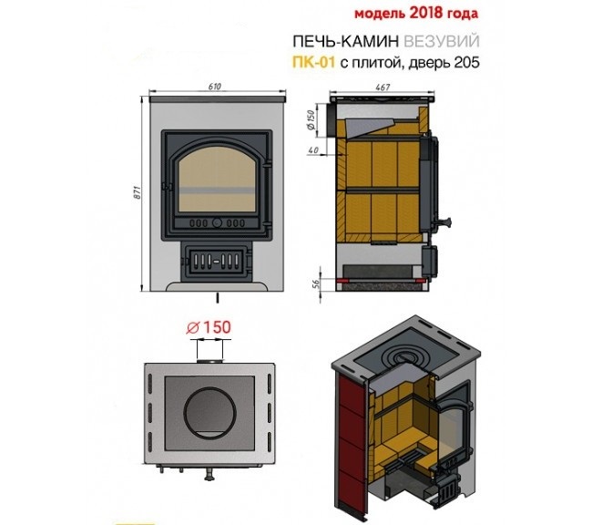 Диаметр дымохода: 150 мм