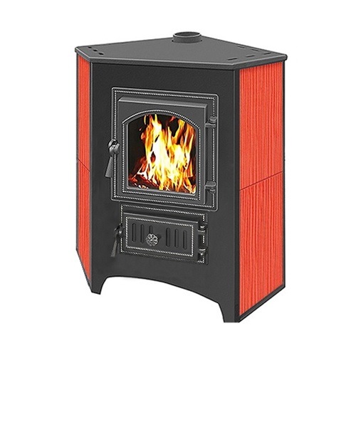 Печь-Камин Везувий ПК-01 (220) угловой красный 9 кВт (150 м3) Ø 115 мм