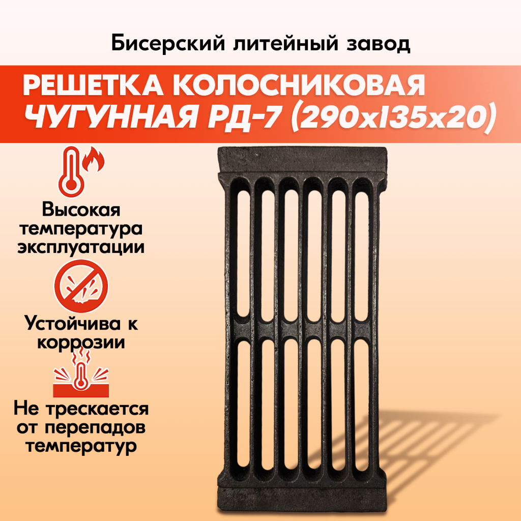 Решетки колосниковые для печи Бисерского Литейного завода производятся из серого чугуна, который отличается прочностью и долговечностью.