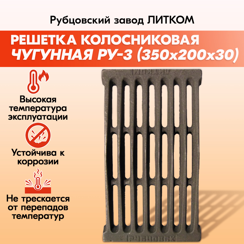 Решетки колосниковые для печи Рубцовского завода ЛИТКОМ производятся из чугуна, который отличается прочностью и долговечностью.