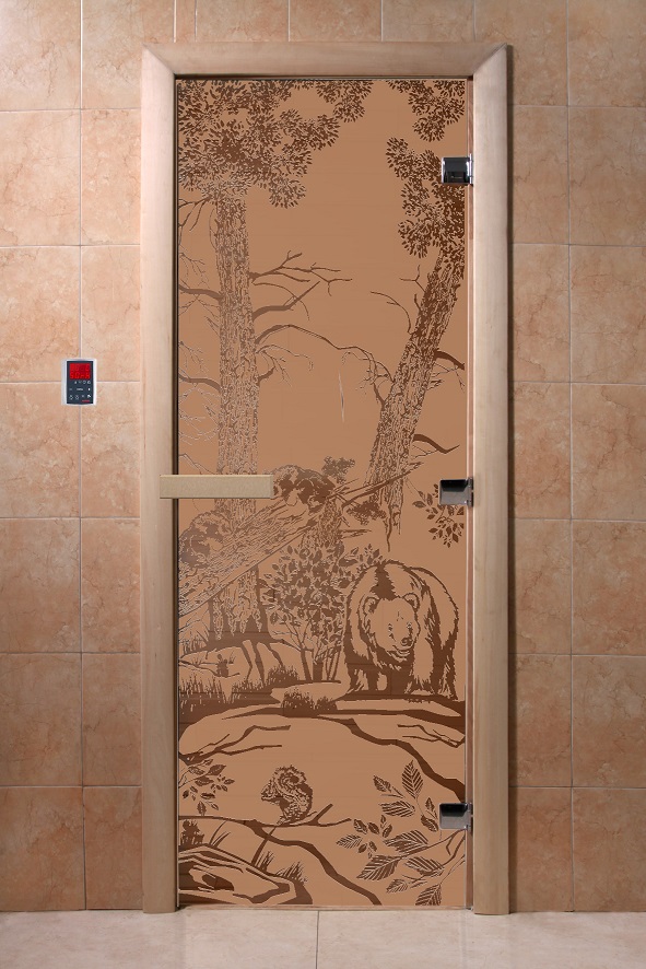 Дверь для сауны "Мишки в лесу" (матовая) 190х70 в Миассе | Доставка по России