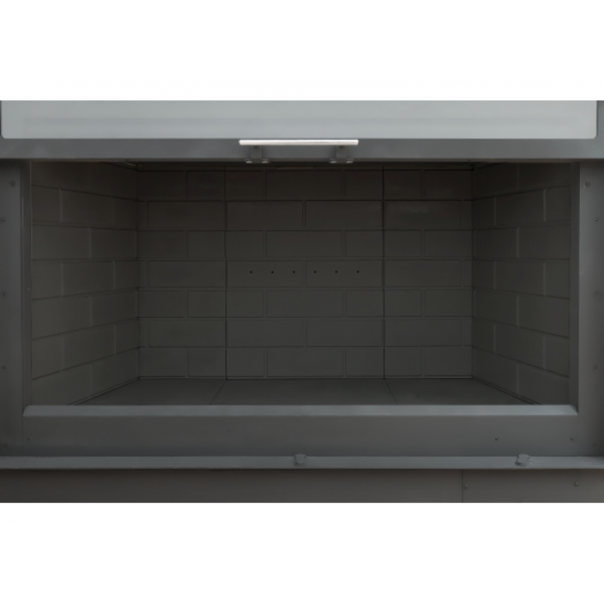 •Высокий дымосборник и пламярассекатель не позволяют продуктам горения попадать в помещение  при открывании дверцы.